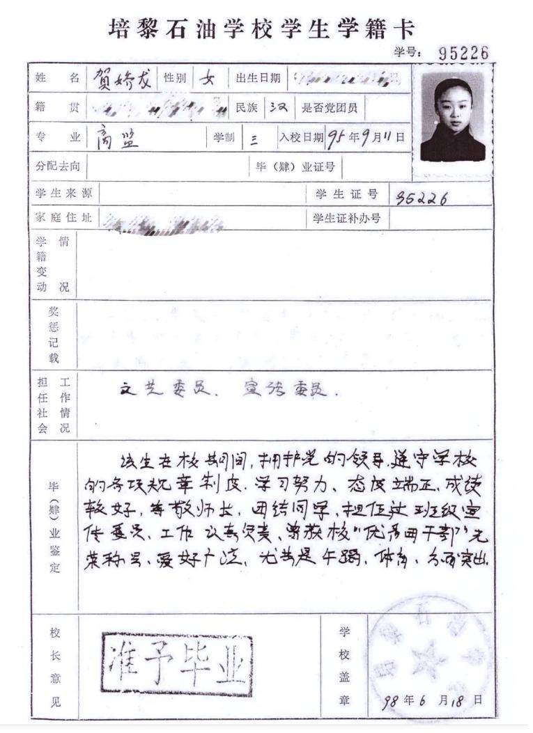 薄薄的纸张上,记载着一个新疆女孩远赴兰州修业的踪迹:她曾是班上的文艺委员、宣传委员,爱说爱笑,晴明矜恤;毕业粉碎里那句“担任班级宣传委员、责任讲求负责”,以及“优秀团干部”称呼,如故了了。昔时真挚写下“学习死力、格调限定、互助同学”时,大要不曾念念到,这个女孩将在二十多年后,把母校“手脑并用、创造分析”的精神,带得那么远,践行得那么实。