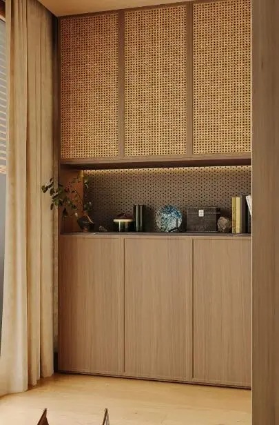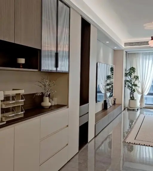 餐厅是咱们用餐的场地,在这里预备柜子的时候,作念顽固式、中间开放式的柜子即可,